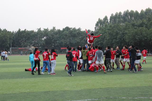 经过激烈的各系小组赛竞争,2013级院“新生杯”足球赛决赛由管理系对阵财经系。我系足球队员激情澎湃,斗志昂扬,激起了场下拉拉队员一阵阵的欢呼声。比赛如火如荼地进行着,足球队员沉着冷静,团结一心。随着一声长哨响起,比赛在欢呼声中结束。我系足球队员奋力拼搏,最终以比分2:0战胜财经系,夺得管理系参加我院 “新生杯”足球赛以来的首冠,创下了历史。