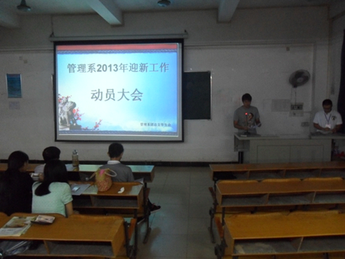 本次大会的举行标志着管理系2013年的迎新工作正式拉开序幕。相信在本学期所有迎新工作人员的积极努力下,2013级的新生们将开始快乐的大学生活。