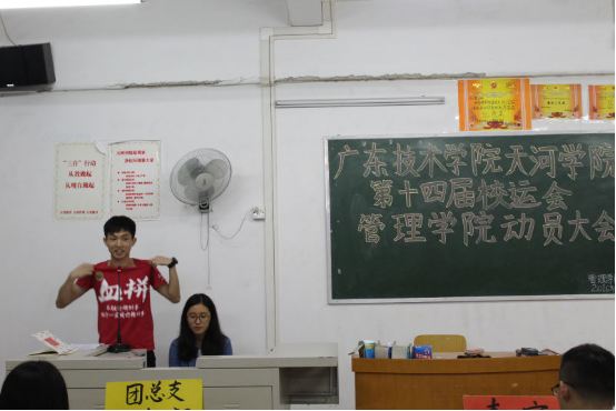会议首先播放了我院第十三届校运会的回顾视频,然后由运动员代表罗嘉文上台发表自己对校运会的感受并为在场的运动员加油打气,紧接着由体育部常务副部长卢楚欣介绍此次运动会的相关注意事项。再由我院办公室主任肖柳发表动员讲话,她通过自身经历来勉励我们努力工作,发扬体育精神,也告诉运动员们在拼搏的同时应注意安全,最后由我院党团总支书记易国富上台讲话,他要求我们发扬“有爱、关爱和自爱”的精神,他希望每个运动员都能在运动场上取得好成绩,并带领全体人员高喊口号“青春激昂,管理飞扬”’,会议在现场热情高涨的气氛中结束。