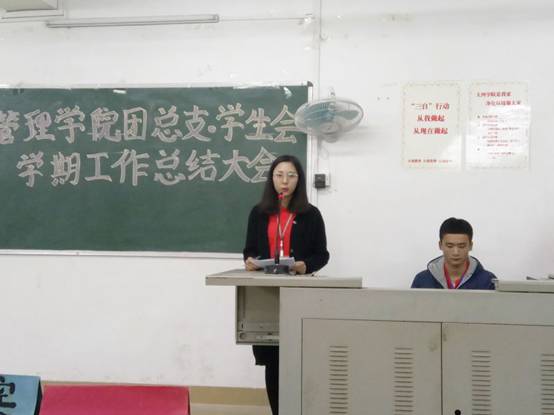 会议开始,全体成员起立奏唱共青团团歌。紧接着,共同观看本学期活动总结视频。然后,由我院体育部大一干事付宏经代表干事上台演讲,他从体育部出发,发表了自己进入学生会以来的感想,而后表明自己作为干事要不忘初心,牢记“工作快乐,快乐工作”这一宗旨。随后,由我院学习部副部长李沁瑜上台,她就本学期的工作做了两点总结:一是作为干部要对工作负责,明确自身定位;二是作为干事要注意自身工作态度和礼貌问题。接着,团总支副书记兼学生会主席孙李上台作学期总结,他简单回顾本学期的工作,然后指出组织部门间应注意沟通、能力、态度和责任的培养,干部和干事都应规范自身行为,增强语言表达能力,共同提高部门文化素质。最后,由黄伟剑书记作会议总结讲话,他肯定了全体成员的付出,也指出了我们的不足之处并希望我们有所改进。