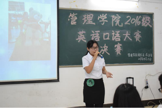 (通讯员:何楚凝)4月25日晚,由我院举办的2016级英语口语大赛决赛在7栋218举行。出席本次比赛评委有我院2015级英语口语大赛一等奖获得者席可汗、我院2015级英语口语大赛二等奖获得者龚琳、英语角网编部部长夏健新和英语角宣传部部长施小婵。我院团总支书记黄伟剑、团总支·学生会主席团成员和各院校代表作为嘉宾出席了本次比赛。