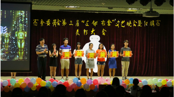 本次表彰大会以“手牵手,心连心,左邻右舍亲又亲”为口号展开了新篇章。晚会伊始,主持人宣布了大会的开始及介绍了到场的嘉宾及组织。接着是各个参赛队伍激动人心的精彩表演,他们的表演不仅展示了当代大学生的活力,还展现了宿舍文化的丰富多彩。现场的抽奖环节以及抢答环节更是将我们的活动推向了高潮。在放映了宿委成果展、红旗宿舍的视频及宿委代表精彩的演讲后,易国富书记和黄浩老师分别为红旗宿舍及参赛队伍颁发了奖状。