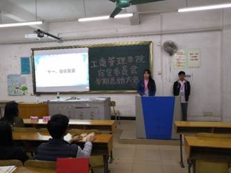 全体一起观看院宿委在过去一年的视频。大会第四项是宿舍委员会各部门干事发言,干事们就这个学期的工作做了总结,说出了他们的收获和不足之处,并且展望了新一年的期望。宿舍长大会策划组代表也进行了对宿舍长大会的总结。宿舍理委员会各部门干部代表发言,总结了这学期的工作,表达了对干事的工作的满意,也总结了一些不足之处,特别是对有多部门的同学强调部门的协调性。suncitygroup太阳集团宿舍管理委员会会长古洁莹总结这一年整个宿委会的活动,强调了干部和干事的工作积极性和礼貌问题,也为下学期的工作进行了展望。希望全体宿委会成员能够为宿委争取更多荣誉。由副会长丘月容宣读工作积极分子名单,并且为工作积极分子颁发奖状。