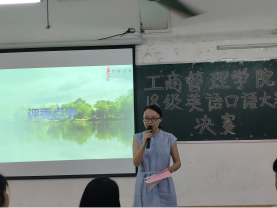经过层层选拔,8位选手顺利进入决赛。比赛的比赛形式分为两个环节:第一环节为自我介绍加主题演讲。选手们围绕“Change”的主题,表达出自己的观点。第二环节为情景对话,在指定的情景里选手们用流利的英文进行交流沟通。最终,选手梁嘉怡荣获本次比赛一等奖。由姚兰老师做出点评,指出选手们在本次比赛中存在的不足,希望他们能更充分地准备比赛。团总支书记黄浩对此次比赛做精彩总结,鼓励大学生要提高英语口语交流能力并积极参加此类语言类的比赛。