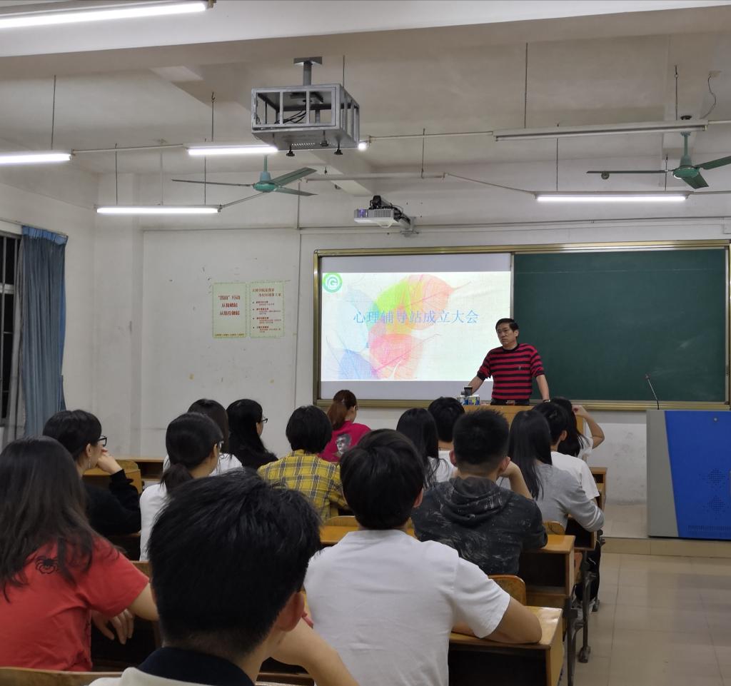 (通讯员:麦振兴)5月9日晚,为加强大学生心理健康教育工作,宣传普及心理健康知识,增强大学生的自我心理保护意识,养成正确的心理健康观念,我院在6栋303B室举行了心理辅导站成立大会,党总支书记易国富、院辅导员老师以及16、17、18级各班心理委员参加了大会。