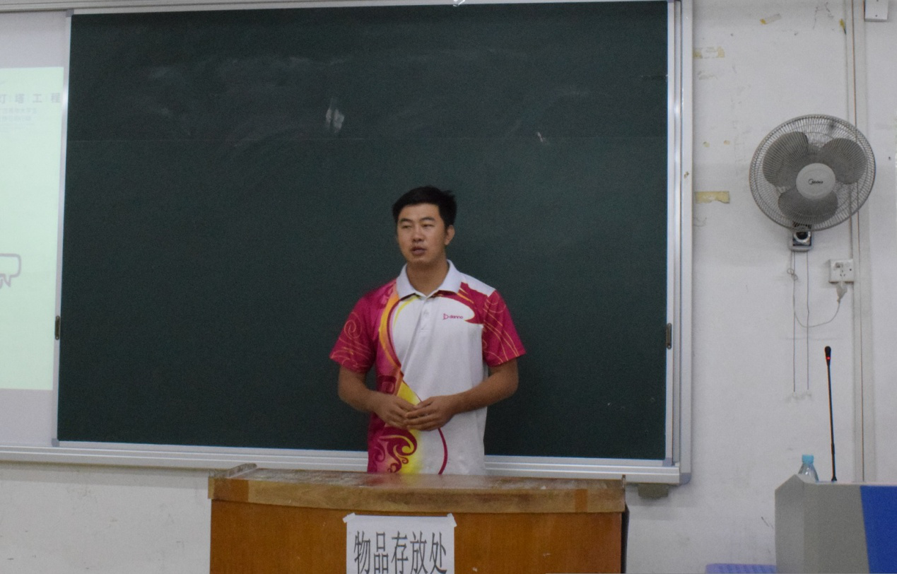 其次团总支书记黄浩发表讲话,他对团总支·学生会这学期所付出的努力进行了肯定,并希望全体成员能够认识到每一个活动的不足之处,并加以改正。同时提出两点要求,一是要求全体成员要以身作则;二是各部门之间要加强沟通与交流。