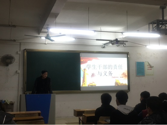 (通讯员:李俊卫)12月5日晚,我院在六栋303a召开主题为《关于学生干部的责任与义务问题》的学生干部座谈会,党总支书记易国富担任主讲,团校第六期干部培训班全体学员出席本次座谈会。