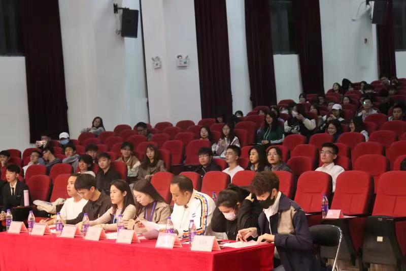 团委李惠玲老师、外国语学院党员服务中心李昉老师、继续教育学院团总支书记刘金雨和电子与电气工程学院潘威龙、外国语学院吴佳颖、继续教育学院黄天勤、电子与电气工程学院林锐等同学组成评委团。