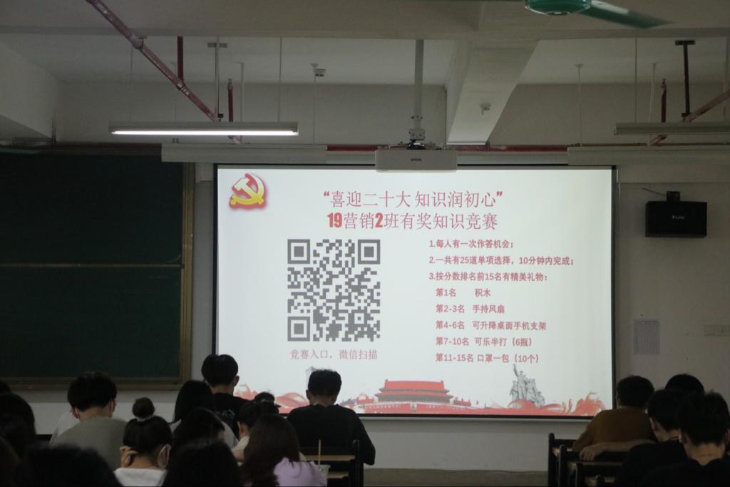 本次活动内容丰富,形式繁多。19营销2班和21电商2班的同学们开展了主题为“喜迎二十大,知识润初心”的有奖知识竞赛。以竞赛的方式,在结合社会主义核心价值观的基础上,深入学习党史、团史、以及党与团的纪律制度。结束比赛后,同学们反响热烈,纷纷表明了希望尽自己最大的努力建设美丽中国和奉献自我服务人民的远大理想。
