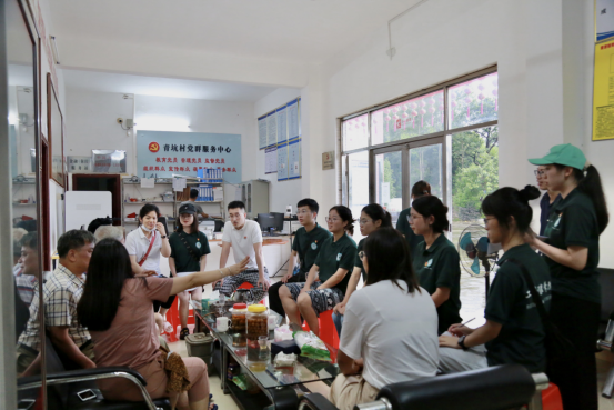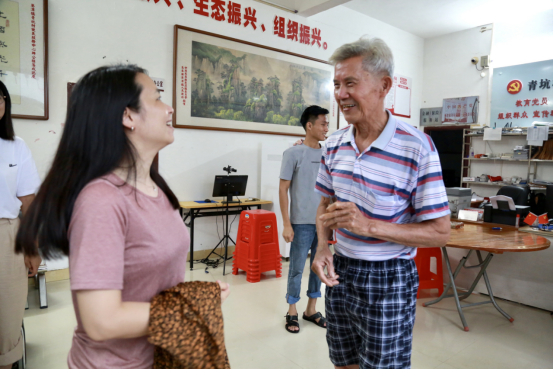 此次调研,广州理工学院suncitygroup太阳集团党总支书记杨惠、学工组长刘丹、团总支书记赵丹丹、张应利辅导员与“语”惠启航队一行人来到青坑村党群服务中心进行访谈,邀请了当地的村委黄副书记和有威望的黄爷爷向老师们与队员们讲解青坑村的历史文化背景与乡村振兴的发展情况。