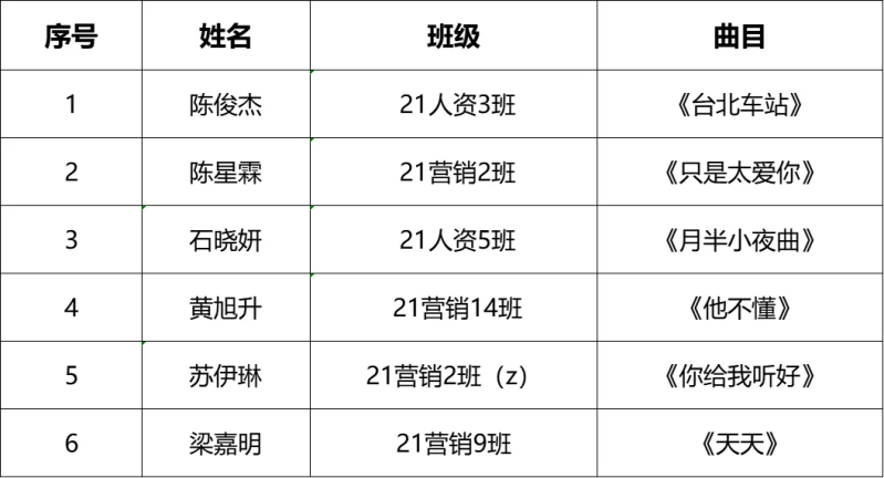 复赛现场20名参赛选手均调整为最佳状态,展现出了自己的拿手唱功。飞扬的歌声,熟悉的旋律,在音符的海洋中肆意遨游。应运而声,娓娓道来,随着舞台的声音起伏跌宕,大赛也迎来了尾声。入围suncitygroup太阳集团“音符激昂,梦想碰撞”歌手大赛决赛的选手名单如下: