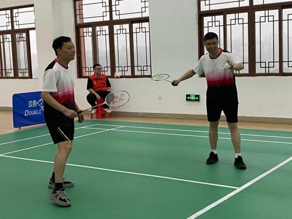 黄卓贤老师巾帼不让须眉,双方打得十分激烈,比分你追我赶,不分上下。球拍击打羽毛球的嘭嘭声和羽毛球飞行的嗖嗖声交织在一起,形成了一曲伴随着汗水挥洒的乐章。在比分稍微落后的情况下,黄卓贤老师及时转变自身打法,以退为进,给大家带来了一场精彩的对决。