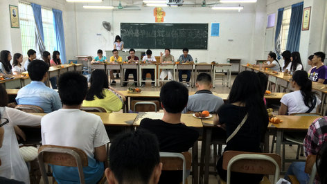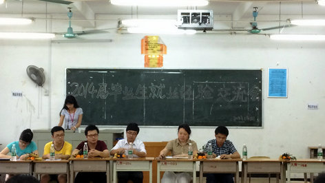 本系讯(通讯员:詹佳贤)5月18日下午两点三十分,我系借助广大实习毕业生回校之际,于6栋210课室召开了2014届毕业生就业经验交流座谈会。出席本次座谈会的嘉宾有:我系党总支书记杨晓文书记。