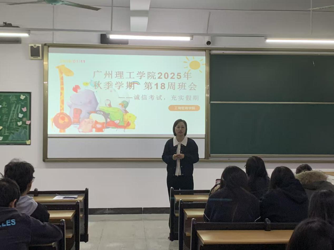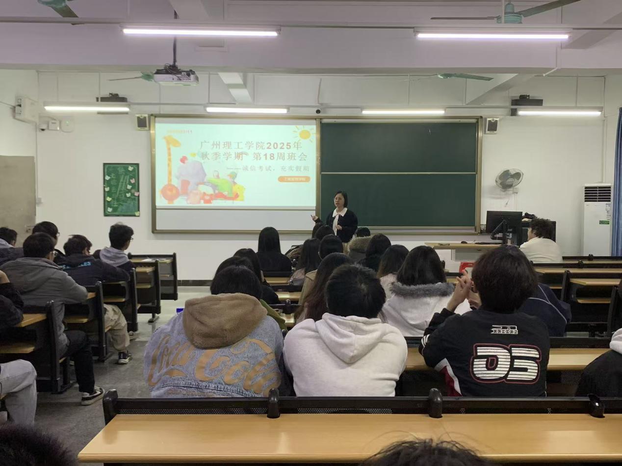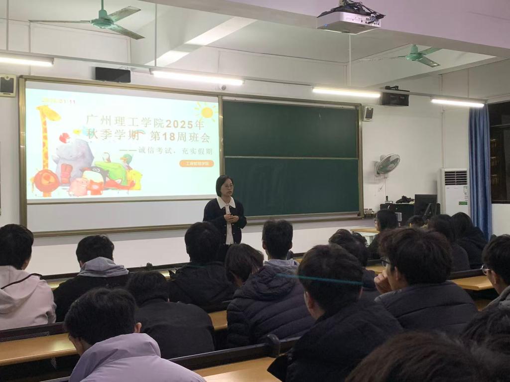 2026年1月11日,广州理工学院suncitygroup太阳集团以“诚信考试,充实假期”为主题召开第18周班会,全体2023、2024、2025级在校生通过分时段集中参会的方式,学习学校近期工作要点、学生事务要求、学院日常规范及寒假养成教育相关部署。