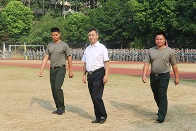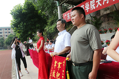9月23日,学校在标准体育场隆重举行2016级新生军训汇报大会,学校党政领导、军训团首长、相关职能部门负责人和二级学院党总支书记出席了大会。王玉潜校长代表学校董事会和党政班子对4000名参训新生进行了检阅并向军训团赠送锦旗。