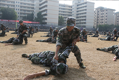 检阅完毕,会操表演正式开始。会操以队伍分列式、男子军体拳、女子匕首操、擒敌拳、短棍术及手语《感恩的心》等形式一一展开,每个方阵动作精炼、节奏分明、套路连贯,震天的吼声将会操推向高潮,现场掌声雷动。
