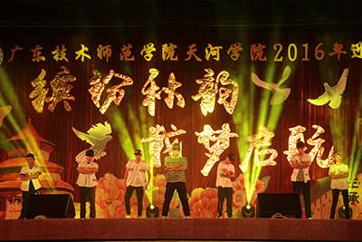 缤纷秋韵唱响青春之志,载梦启航弹奏青春乐章。10月13日,广东技术师范学院天河学院综合运动场华灯璀璨,掌声雷动,由学校党委主办,学工部和团委承办的2016迎新文艺晚会隆重举行。