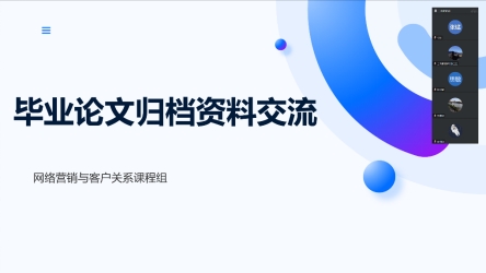 (张锰)为确保论文过程性材料保质保量符合要求,促进课题组成员内部的经验分享与协作,5月16日网络营销与客户关系课程组通过腾讯会议平台召开“毕业论文论文归档资料交流”主题例会。会议由课程组组长陶思老师主持,组内教师积极参与,围绕论文过程性资料汇编的要求、学生常见问题、如何引导学生解决问题等核心议题展开深入探讨,为后续毕业论文资料归档提供了宝贵经验。