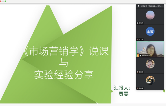 随后,说课活动正式开始。首先,贾雯老师对《市场营销学》课程进行了说课。他从课程概要入手,详细阐述了该课程开设的背景、意义和目标,以及针对教学对象的学情分析和考核评价方式的方法。随后,她介绍了课程建设的开展、阶段性成果和阻碍,并分享了作为专业基础课实训情况的心得体会。贾老师的说课内容充实、条理清晰,得到了与会老师的一致好评。