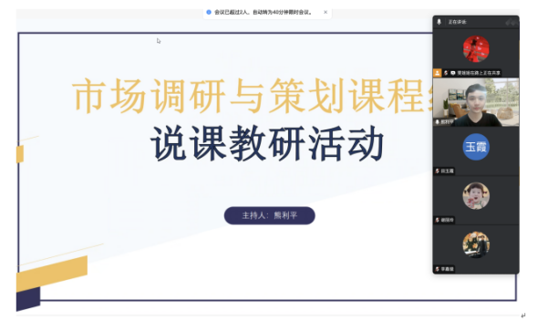 (贾雯)为更好地贯彻本科教学合格评估指标体系要求,落实《广州理工质评函2025年17号文件》的检查任务,2025年6月10日,市场调研与策划课程组在线上开展一场说课模拟演练教研活动,活动由课程组负责人熊利平老师主持,课程组负责人熊老师先介绍了本次说课模拟演练的背景、目的和意义,并强调了说课在提升教学质量、优化教学设计方面的重要作用。他鼓励教师们积极展示自己的教学理念和课程设计,通过互相学习和交流,共同提升教学水平。他提出:“此次活动是课程组老师对教学思维的凝练,不仅能提升教师的教学设计能力和语言表达能力,推进教学质量提升,更是响应学院积极备战本科教学合格评估的重要举措。”