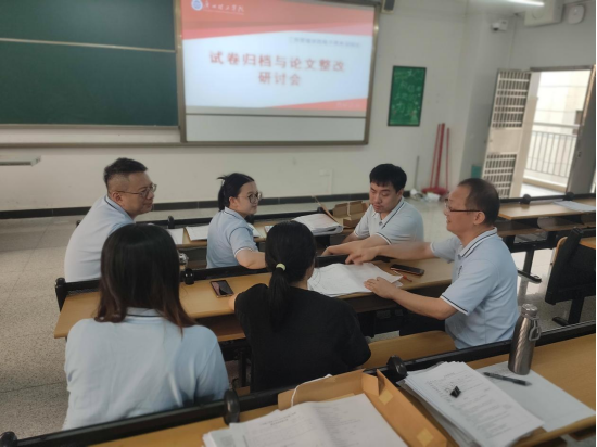 试卷归档方面,按照试卷盒子目录顺序进行归档。论文整改方面,严格按照论文撰写规范进行格式修改,过程性材料严格按照范本进行修改。课程组负责人在总结时强调,要通过此次整改,让试卷不仅成为检验知识的载体,更成为复盘实践教学的依据;让论文既体现学术规范,又能为行业实践提供参考。