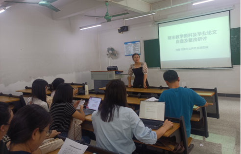 活动开始,课程组组长林慧老师全面部署并深入开展了期末教学资料与毕业论文自查及整改研讨工作。大家汇总讨论自查过程中的问题,针对重点问题和容易产生歧义的问题展开热烈讨论。教师们纷纷发表看法和经验,结合自身教学实际,探讨如何在课程设置、课堂活动、教学实施等方面更完善的体现在教学资料中。大家积极发言,分享自己在教学材料整理和撰写过程中的问题以及论文指导过程中可能出现的不规范问题。通过小组内思想的交流与碰撞,教师们对整改工作有了更清晰的认识,为教学基础资料与毕业成果进行了一次全面而深入的“质量体检”。