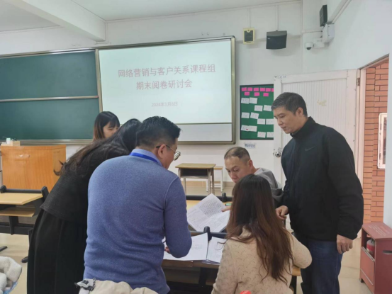 (刘洋)1月8日,广州理工学院网络营销与客户关系课程组在7-517教室组织了一场期末阅卷研讨会。会议参与的课程组老师有刘洋、张锰、刘延卿、黄翠雯、熊利平、谢怡和杨凌等,本次研讨会不仅仅是按照学校的要求和标准去交流阅卷、评分等相关工作,特别是对年轻教师进行指导。同时本次会议旨在总结和评估本学期网络营销与客户关系课程的教学成果,并为下一学期的教学改进提供参考。