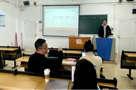研讨会伊始,直播课程负责人徐上乔老师和社交电商课程负责人罗云凡老师分别上台展示了各自课程的大纲内容。徐上乔老师详细解读了直播课程的性质、定位、教学目标以及教学内容和学时分配,引发了在场人员的深入讨论。罗云凡老师则围绕社交电商课程大纲,从基本信息、定位和任务、教学目标等方面进行了全面展示。两位负责人的展示不仅展示了各自课程的特色,也为与会者提供了制定教案大纲的宝贵参考。