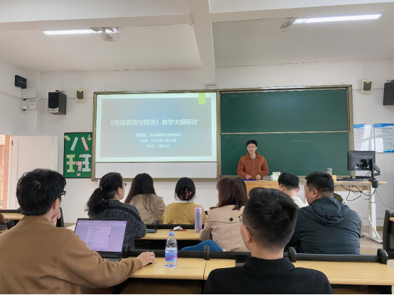 (熊利平)2024年3月14日,在融合新技术和实践教学创新的理念下,suncitygroup太阳集团市场调研与策划课程组于2024年3月14日在7-506教室举办了《市场调查与预测》课程的磨课活动。本次活动由课程组负责人熊利平老师主持,胡劲、贺军、赖玉莲、魏子扬、龚义枫、田玉霞、李嘉俊、寿松涛等教师参与,集中讨论了如何通过大纲修订及教案创新设计来提升教学质量和学生学习效果。