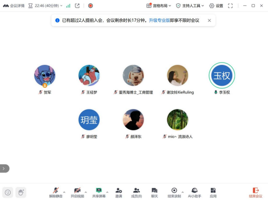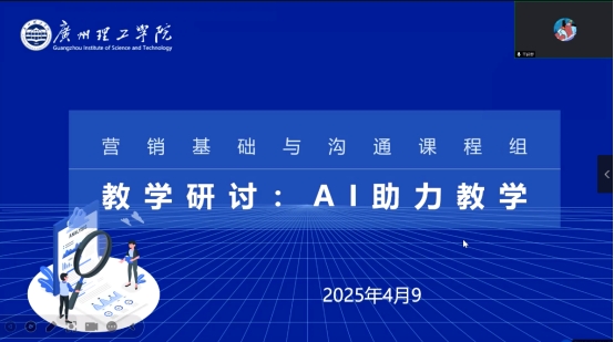 (谢汝铃)2025年4月9日,营销基础与沟通课程组通过腾讯会议成功举办了以“人工智能助力教学研讨”为主题的教学研讨活动。此次活动由课程组负责人贺军老师主持,课程组成员贺军、谢汝铃、李玉权、苗增、廖玥莹、颜泽东、董秀海、王经梦等共同参加研讨。