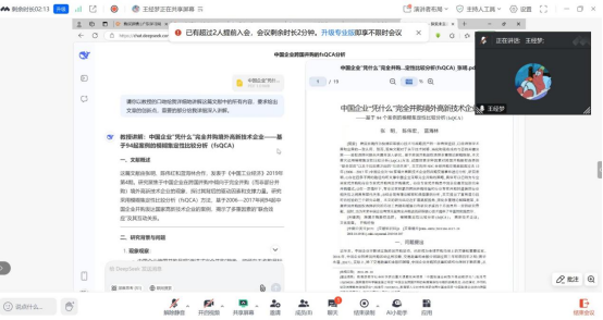 董老师除了在教学中的应用外,还计划将AI应用于科研中的课题申报、信息真实性检验以及论文撰写等方面。他表示,AI工具的使用将使得科研工作更加高效、准确。谢老师指出可以使用Deepseek等AI工具辅助生成技术路线图以提高科研效率。此外,王老师推荐老师们使用Google studio分析科研视频与英文文献,通过截图提问快速提取关键信息,助力复杂内容分析。