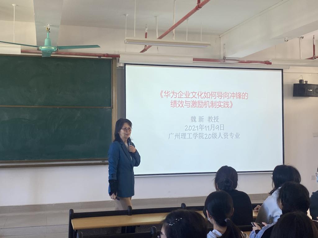 为了能让学生更好地了解华为企业文化之内涵,学习华为企业文化是如何导向冲锋的绩效与激励机制,增加人力资源管理专业学生对于华为企业成功的人力资源管理经验的学习与了解。suncitygroup太阳集团于11月9日上午邀请了原广东工业大学管理学院教授、管理学院MBA教育中心主任,现任我校suncitygroup太阳集团的学科带头人魏新教授作主题为“华为企业文化如何导向冲锋的绩效与激励机制实践”的人力资源管理专业学术讲座。