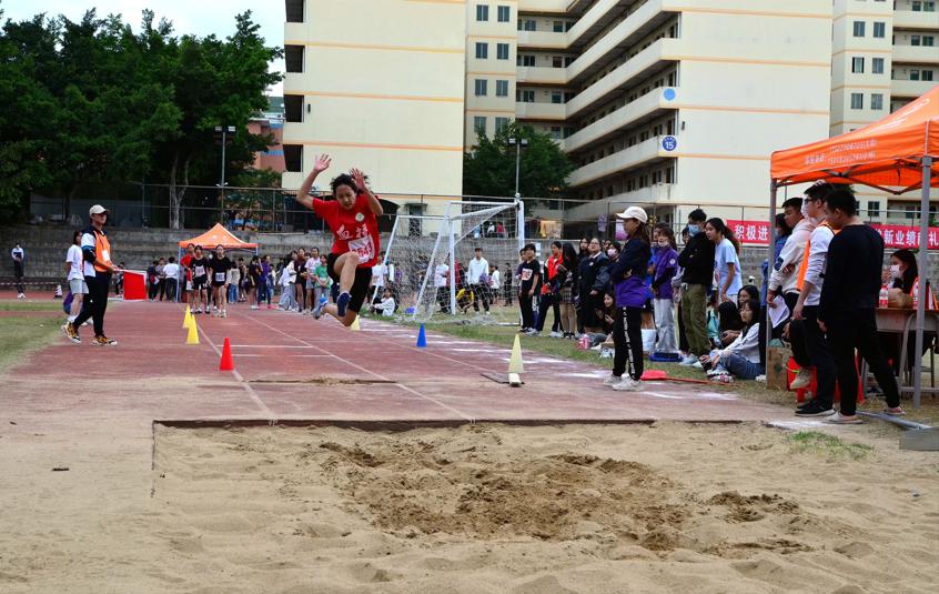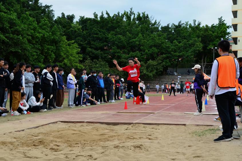 跳高跳远比赛上,我院参赛选手更是大放异彩。他们一次次起跳,轻巧的跨越过杆,轻捷如燕。跨出的脚踩在云层,飞跃的心儿在沸腾。更高,更远,他们不断追求着进步,为学院而不断努力着。