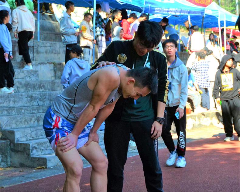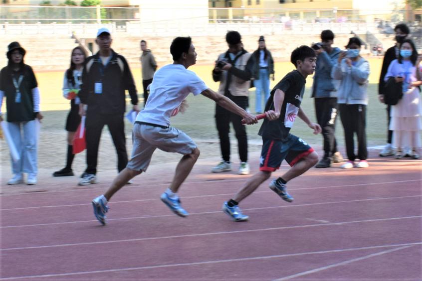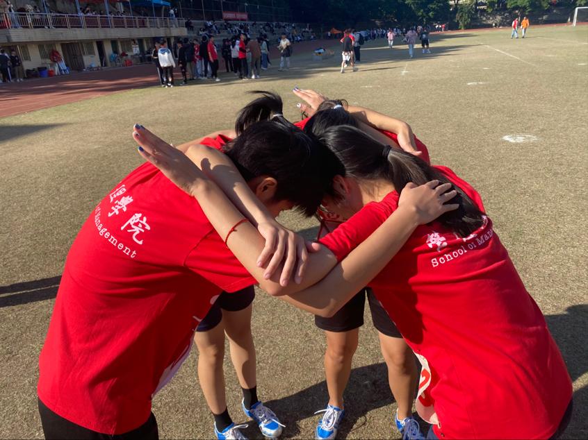 最吸引人的莫过于接力比赛。我院选手一个个势如破竹,用着最快的速度奔跑,院服上的“血拼”二字更是体现了他们的决心。摇着手中的“拍拍掌”,拉拉队员的呐喊声一波接一波。每一次冲刺,都伴随着助威团的欢呼声。每一个奔跑的声影,背后都有无数双关切注目的眼睛。比赛结束后,选手们互相支撑着,拥抱彼此,共同享受着成功的喜悦。