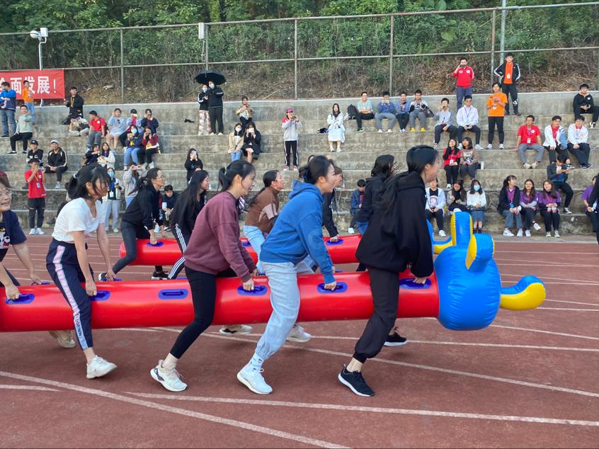 教职工比赛作为本次运动会的尾声,有趣的毛毛虫比赛引得大家全场的欢呼,加油声此起彼伏。我院老师更是一路勇往直前,伴着欢声与笑语结束了此项比赛。