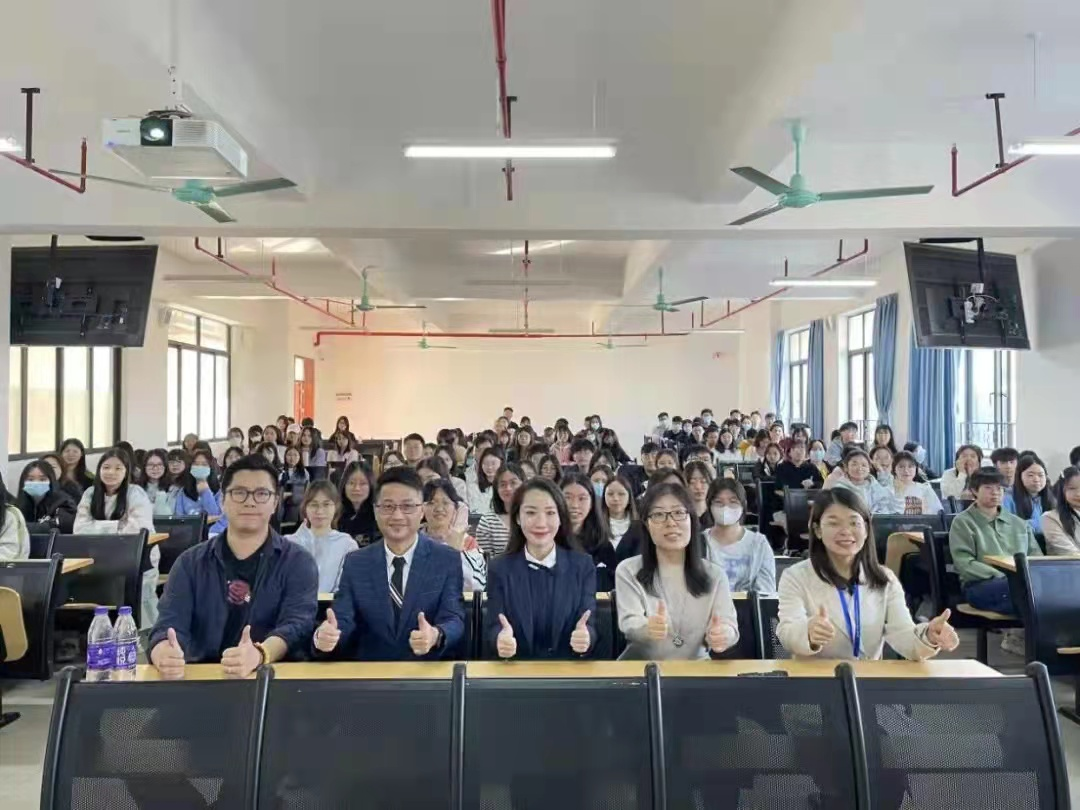 广州三棵榕集团总经理助理陈煜先生以自身经验与在场的同学们分享人生规划、学习规划与职业规划,讲述自己从非专业领域一步一步成为“专业”人士,告嘱同学们一定要抓住每一个转瞬即逝的机会,努力蜕变。