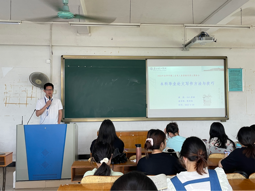 19人资班班导师陈英征老师讲解了本科毕业论文写作方法与技巧,从五个部分描述,给同学们做了详尽的指导,他提醒同学们一定要重视社会实践和毕业论文的写作质量,要珍惜毕业前的在校时间,培养自己的团队合作精神和沟通能力,学会主动学习,不断提高综合素质,才能更好为日后工作奠定良好的基础。
