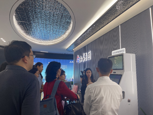 参访成员在企业负责人的带领下参观了红海云集团的科技展厅,深入了解红海集团所开发的人力资源智能终端系统、人力资源驾驶舱、内部交流系统“红海云”等数字化产品和服务,集中展示了人力资源管理变革趋势中的数字化方向:沟通数字化、数据全联通和技术智能化等。