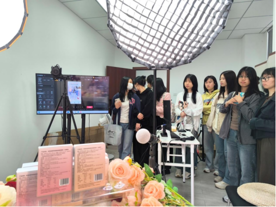 在参观学习的过程中,学生们有序前往直播间进行参观。学生们更直观地了解到场地布景、场地分工、演员沟通等拍摄过程,加深了学生们对拍摄工作的系统化认识。