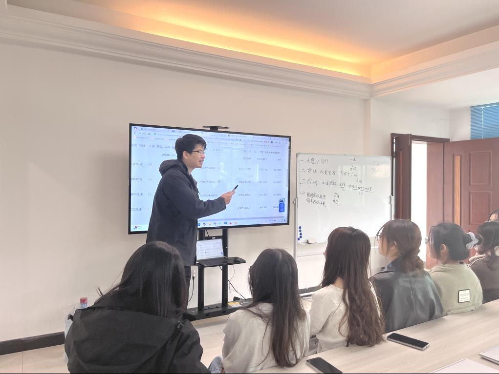 学校聘请优秀校友、共盈传媒有限公司CEO高伟昌师兄回校进行电商直播实训授课与指导。高伟昌师兄为学生们带来了一场生动有趣的学习盛宴。他以丰富的行业经验和独到的见解,深入浅出地介绍了直播电商和营销领域的最新发展动态,并通过与同行的对比分析,引导学生们深入了解行业现状与趋势,为他们未来的职业生涯规划奠定了坚实的基础。高师兄向学生介绍了直播电商的基础知识,其中包括:直播电商的定义,直播电商的优势,直播电商的发展趋势以及直播电商的关键要素;规划了后续学生的学习重点:学生在学习直播电商时需要重点关注直播技巧、产品知识、沟通能力等方面,通过实践提升自身能力。实训课程内容不仅丰富了学生们的专业知识,还通过电商直播行业的实践案例和经验分享,有效提高了他们的实践能力和创新意识。学生对高伟昌师兄亲自授课的实训课程给予了高度赞美。他们纷纷表示,课程内容生动有趣,让他们在轻松愉快的氛围中获得了丰富的知识和经验。高昌伟师兄以其丰富的行业经验和深刻的理解,为学生们呈现了一个全新的视角,让他们更深入地了解了电商和营销领域的现状和发展趋势。实训过程中,同学们积极参与,勇于尝试,不仅提升了自身的直播技能,也增强了团队合作意识。