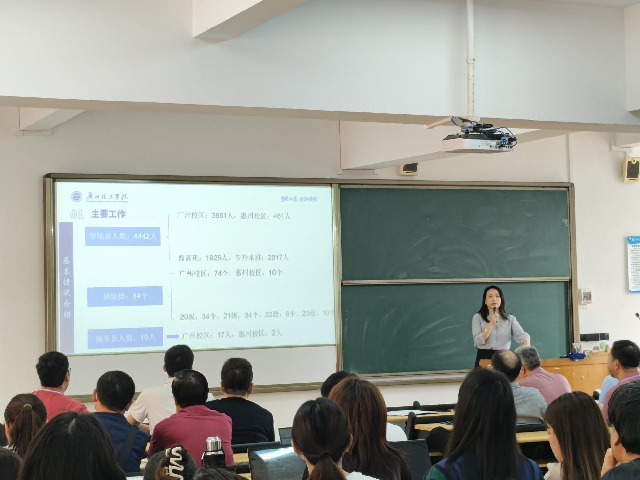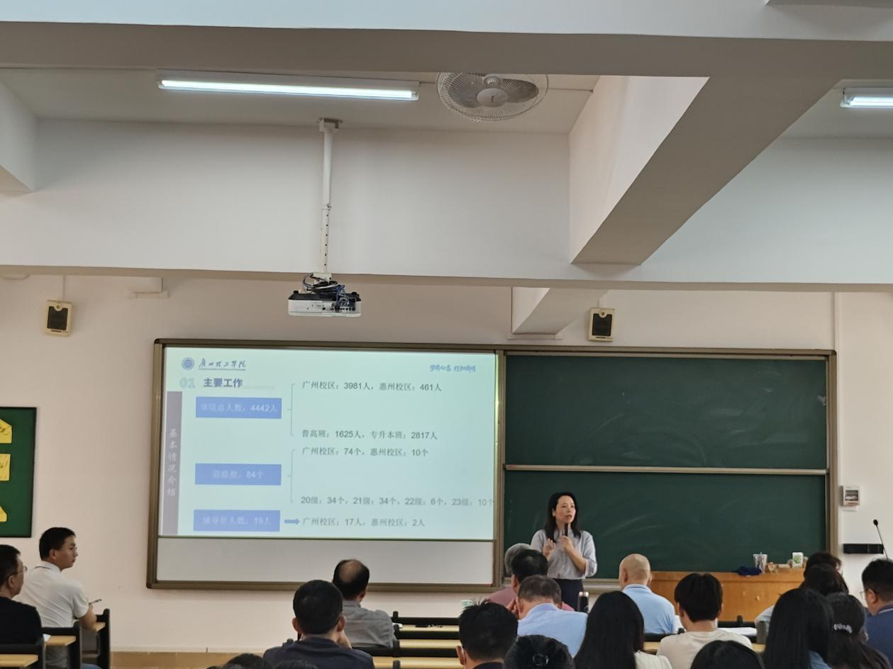 杨惠书记在会上从学生工作的角度出发,着重汇报了3月份以来课堂巡课、听课、学生出勤率、前排率、老师上课的精神面貌、学生带教材、做笔记情况和不文明行为大检查等方面的情况,同时还在会上针对我院2024届毕业生就业工作做了具体分析和接下来工作安排。她指出,为了提升教学质量和学生课堂参与度,学院近期开展了课堂巡课听课活动,督促教师认真备课、授课,也帮助学生更好地投入到学习中。此外,学院还进行了文明大检查、课间巡课活动,旨在培养学生良好的学习习惯和生活习惯,维持课堂纪律。