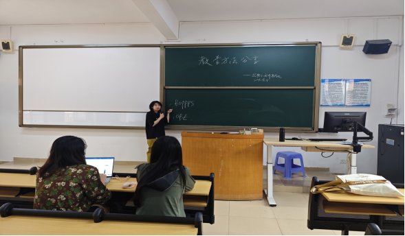 (马金玲)2024年4月11日,招聘与培训课程组于7-510开展了就教学方法如何助力提升课堂效率与质量的磨课活动。本次活动由胡云鹤老师进行分享,主要向课程组成员阐述了如何借助Boppps和OBE两种比较前沿的方法提高学生的课堂参与度与强化课堂管理。