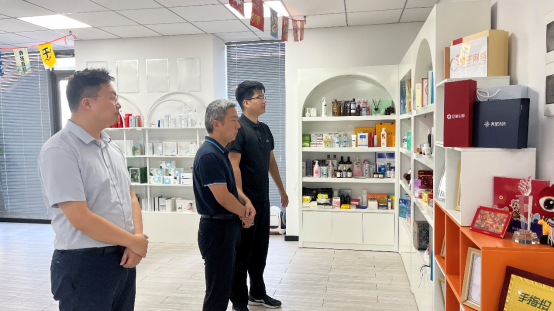 倪院长一行现场在负责人高伟昌的带领下,参观了直播间内专业的产品,负责人还热情地为倪院长一行进行产品展示并作推荐介绍,同时还全面地讲解目前共盈传媒的合作项目、经营模式。