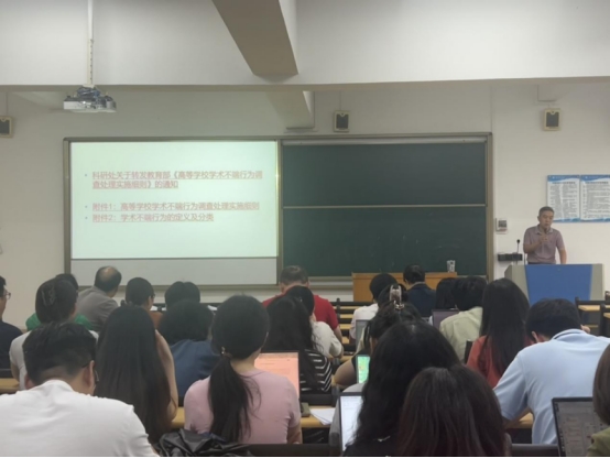 会议深入学习了《教育部关于印发〈高等学校学术不端行为调查处理实施细则〉的通知》精神,明确了学院学术团队的分工,详细了解了学术不端行为的调查与处理流程,重点强调了学术不端行为的认定与处理。倪江威副院长指出,科研诚信对于每位教师的职业生涯至关重要,也关系到学院科研作风和学风的建设。他希望每位老师都能认真学习相关文件,共同努力,防止学术不端、剽窃、抄袭等行为的出现,营造风清气正的科研环境。