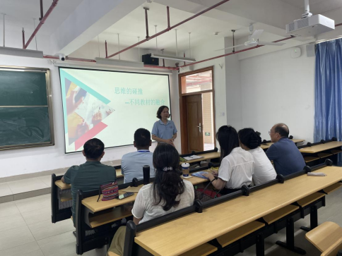 本次研讨会由徐文婧老师主持,徐老师提到,在这个知识爆炸的时代,单一教材已难以满足我们培养复合型人才的需求。如何巧妙地融合多本教材的精华,让学生在对比与碰撞中激发新的思考,是每一位老师可以思考和讨论的问题。