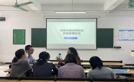(胡云鹤)2024年11月14日上午,招聘与培训课程组在学院12-1008教室围绕教学大纲、教案质量评审工作组织了一次磨课活动。本次活动就教学资料的规范,同时促进课程的教案和教学效果的提升,更好地服务于人才培养的目标。