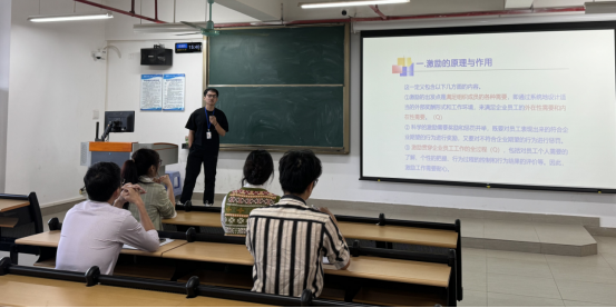 研讨会下半部分由魏子扬老师针对《销售管理》课程中《销售人员的激励》这一章节的内容展开教学试讲。内容上首先是介绍该章节的学习目标,并且阐明后面所学内容与该些学习目标的对应关系;其次在教学设计中的课堂预热环节,设计“如何定义外在性需要和内在性需要?”、“‘激励’在员工开展销售业务工作的全过程中分别起到什么作用”两个开放性问题,引起学生求知兴趣,引导学生发散思维并结合自身所闻所见发表看法,为讲授新课营造良好的教学氛围;再而是有关教学拓展部分,引入了现今企业重视且积极建立的员工反馈机制——反馈循环,通过多个方面向学生介绍企业构建反馈循环的必要性以及该机制对公司运行、优化、发展的意义,让学生明白反馈机制与员工激励的联系。