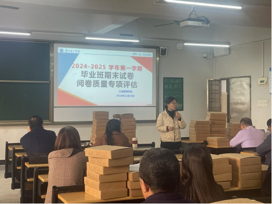 (杨漫丽)为更好地落实质评中心《关于开展2024-2025学年第一学期期末试卷阅卷质量专项评估工作的通知》(广州理工质评函〔2024〕34号)工作要求,suncitygroup太阳集团于2024年12月26日、2025年1月15日在12栋804教室分别进行毕业班和非毕业班期末试卷阅卷质量的专项评估工作。此次评估旨在进一步规范教学管理,提升教学质量,确保课程考核在人才培养中的有效性。