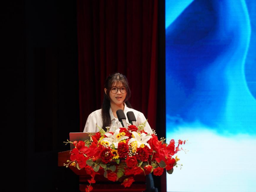 黎海铃同学从思想、学业和实践三个方面进行分享。她在大学期间积极进取,参与各类竞赛并获奖,通过课外阅读、组织实践等不断锻炼自我,思想上积极向党组织靠拢,成绩优异,还通过兼职实现生活费自给自足,展现了自强奋进的精神。她鼓励同学们要勇于探索,持之以恒,才能成就更好的自己。