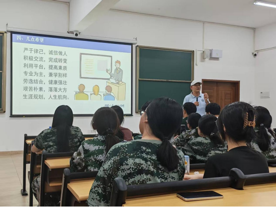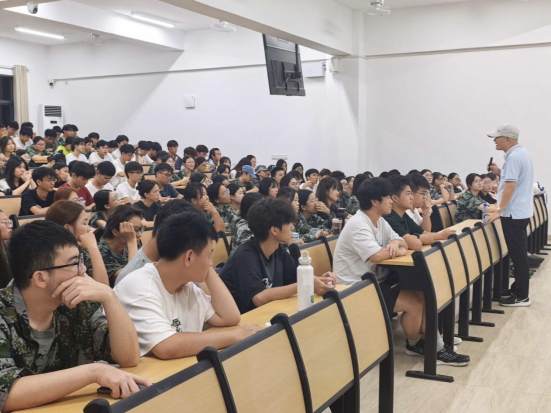 他没有急于展开理论讲解,而是先从学院的人文脉络娓娓道来 ——从建校初期一些教授老师的坚守,到如今各个领域的创新突破;到历届学长学姐在全国专业竞赛中斩获佳绩的荣光……那些藏在时光里的奋斗故事,像一幅幅生动的画卷在新生眼前铺展。有人轻轻举起手机拍照,有人不自觉地挺直了脊背,对“工作管理学院”这六个字的认知,不再是招生简章上的冰冷文字,而是有温度、有厚度的精神家园,一种对专业的向往与对学院的归属感,正伴暮色在心底悄悄种下,仿佛随着第二天的晨光,就要悄悄发芽。